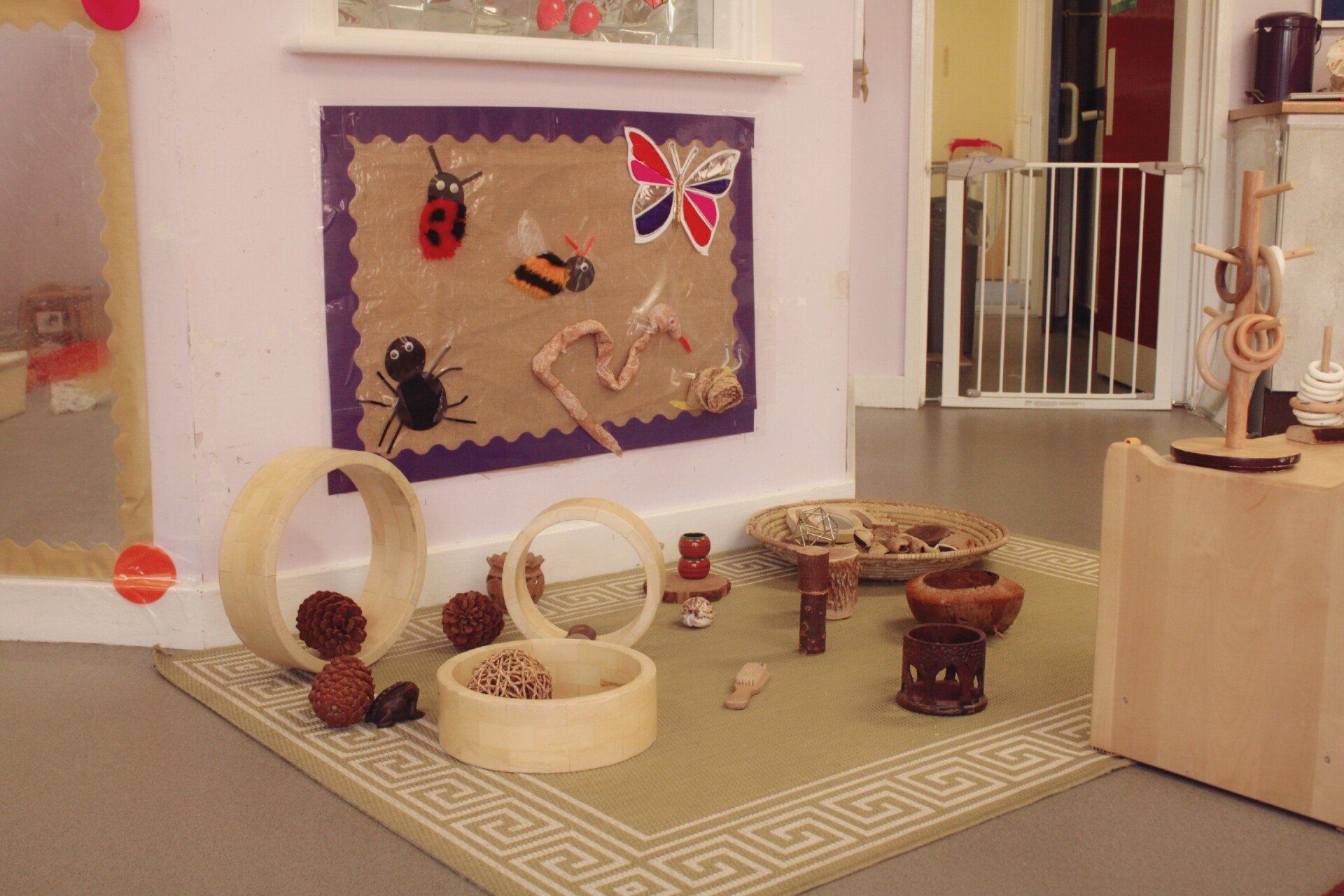 During their time with us, the children can make use of the extensive nursery grounds where they enjoy supervised play on climbing frames, riding bikes, cooking in the mud kitchen, exploring nature and making dens. Inside, the children enjoy a varied curriculum of exciting challenging activities and experiences, following the Early Years Foundation Stage Curriculum. We operate a continuous provision, free flow play system, where children enjoy playing and exploring with a range of natural materials.